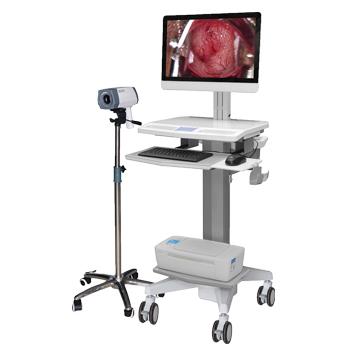 数码电子阴道镜是集现代数码电子技术和计算机技术于一体的第四代高科技数字影像系统。通过计算机实时清晰的把位的图像显示在电脑显示器上,其优质的光源和高倍放大的清晰图像可以鉴别极微小的病灶。医生可在电脑显示器上观察病灶,操作简便,可用于诊断和治疗两个过程。同时,利用与之配套的阴道镜数字图像处理及图文报告系统,可对观察的影像进行采集、冻结、分析、处理、存储及打印等进行一体化操作和管理,为医生、病员提供更优质的服务。该系统不但广泛应用于女性内、外生殖系统疾病(外阴、、宫颈等部位)的诊断、教学和研究。还可应用性犯罪、医疗事故的法医鉴定、皮肤美容等领域。